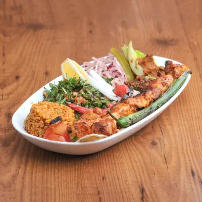 Mevsim salata, közlenmiş biber, pilav, acılı ezme ile...